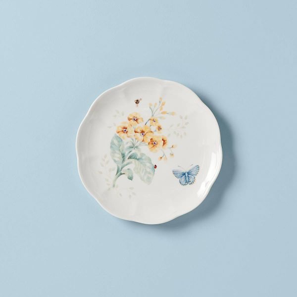 A springtime illustration plays out across the this accent plate’s surface with airborne butterflies and bumblebees and crawling ladybugs. Crafted from durable white ceramic porcelain with a lightly scalloped edge, the Butterfly Meadow 9 Accent Plate bears outstanding freezer-to-oven-to-table performance, and is microwave and dishwasher-safe.