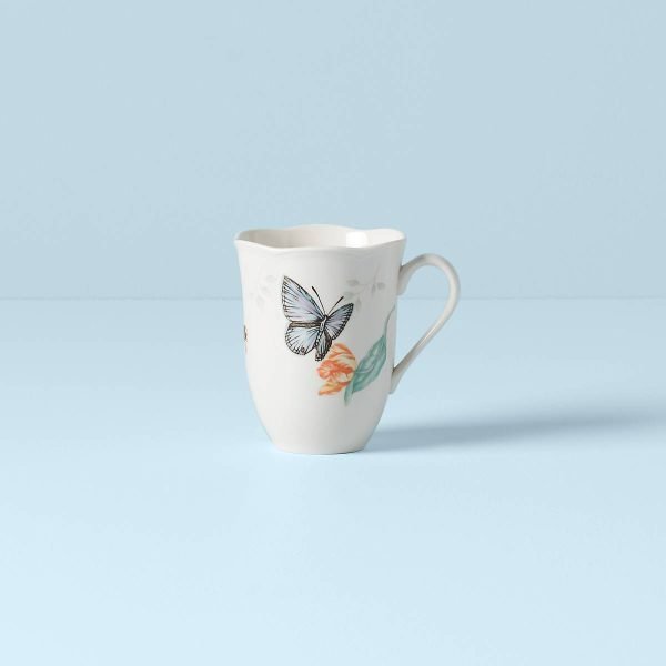 With a scalloped rim and lively blue butterfly floating through a floral motif, this durable white ceramic porcelain mug makes an ideal fit for the day’s first cup. From the Butterfly Meadow collection, this mug is microwave and dishwasher-safe.