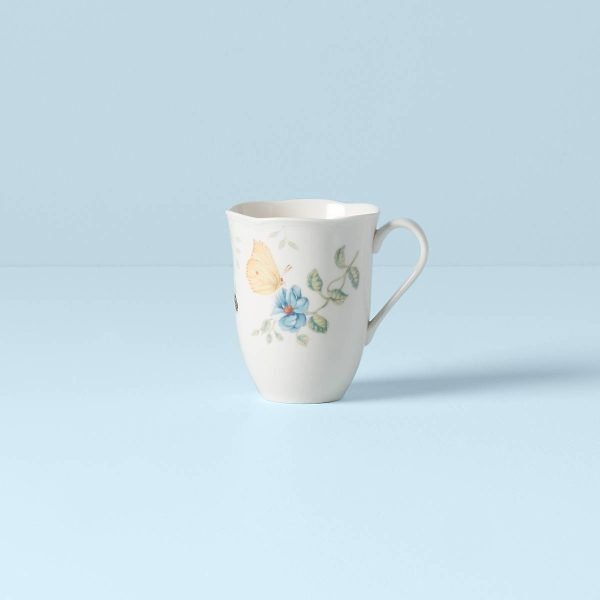 A dragonfly flutters above a welcoming flower on the charming Butterfly Meadow Dragonfly Mug. This durable white ceramic porcelain mug features a scalloped rim, and is microwave and dishwasher-safe. Mix and match the mug with other Butterfly Meadow mugs, saucers, and dinnerware.