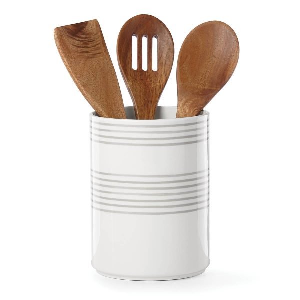Because every meal whether it is a multi-course homemade masterpiece or Chinese takeout and cupcakes deserves a perfectly pretty place setting. Like this utensil holder from the Charlotte Street Collection, crafted of dishwasher-safe durable white ceramic stoneware. Bon appetit!