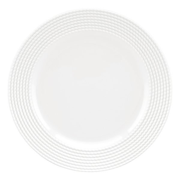 Timeliness with a subtle twist, the Wickford collection is adorned with a textured rope motif. From Kate Spade New York, the Wickford dinner plate is crafted of durable white ceramic porcelain, and is microwave and dishwasher-safe.